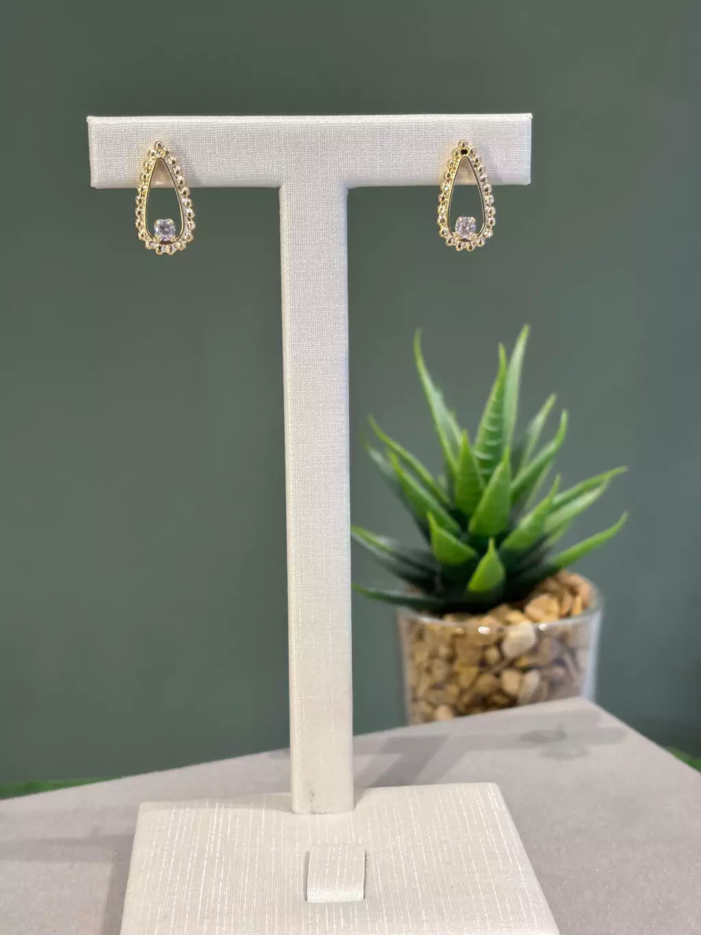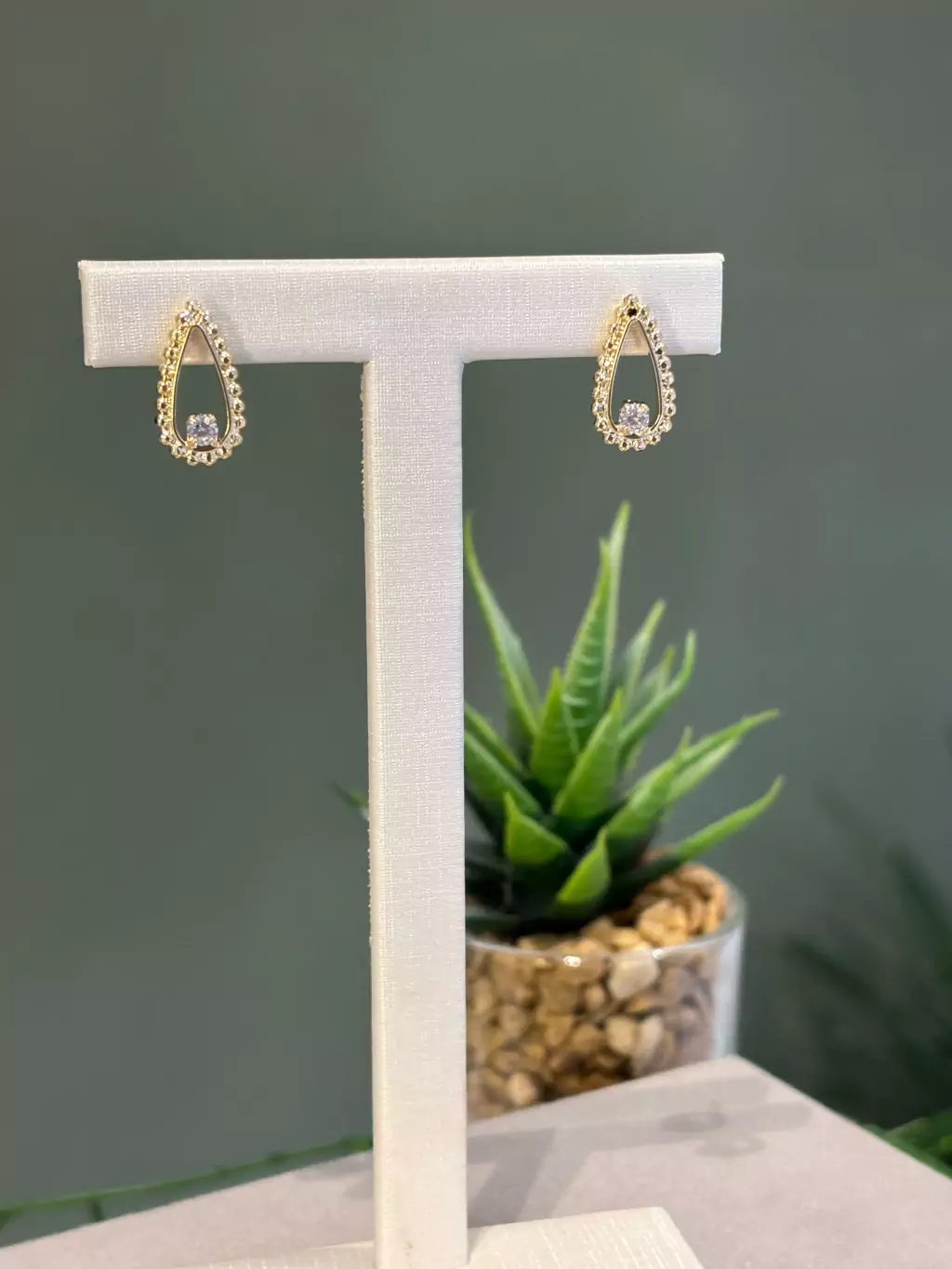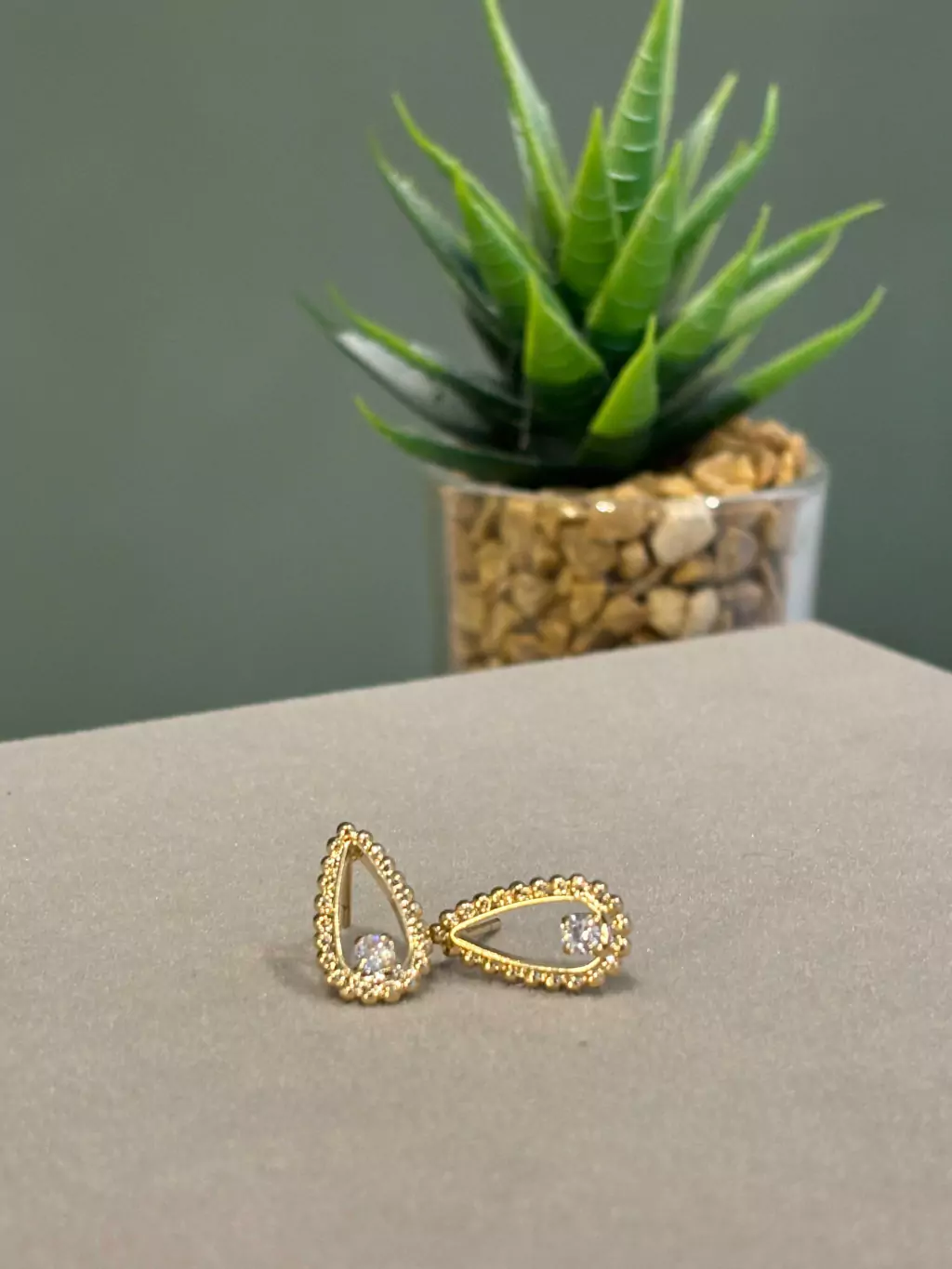 BRINCO FORMATO DE GOTA COM UM CRISTAL - TAMANHO 1,6CM - PESO 1,8GR - BANHO OURO 18K